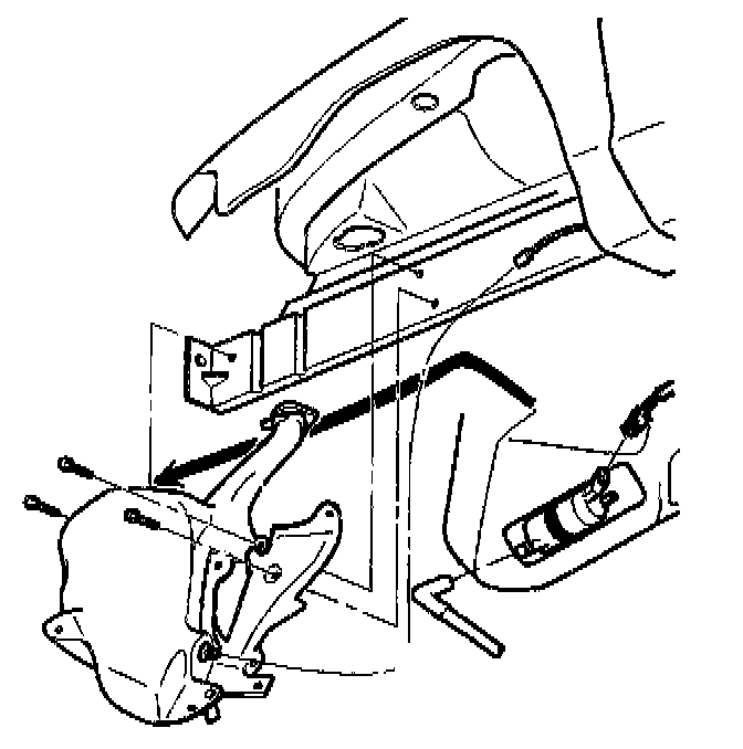 7. Remove the 3 screws and the washer solvent container from the vehicle.