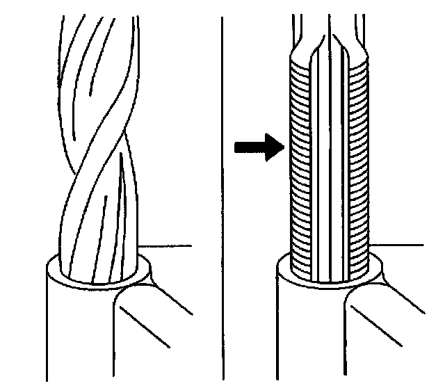 Important: The thread insert should be flush to 1 turn below the surface.