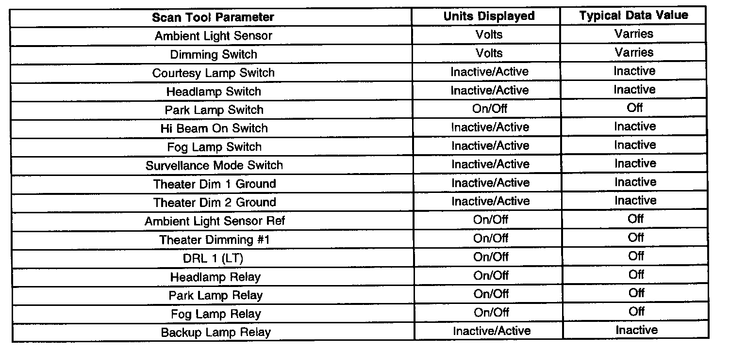 Scan Tool Data List: