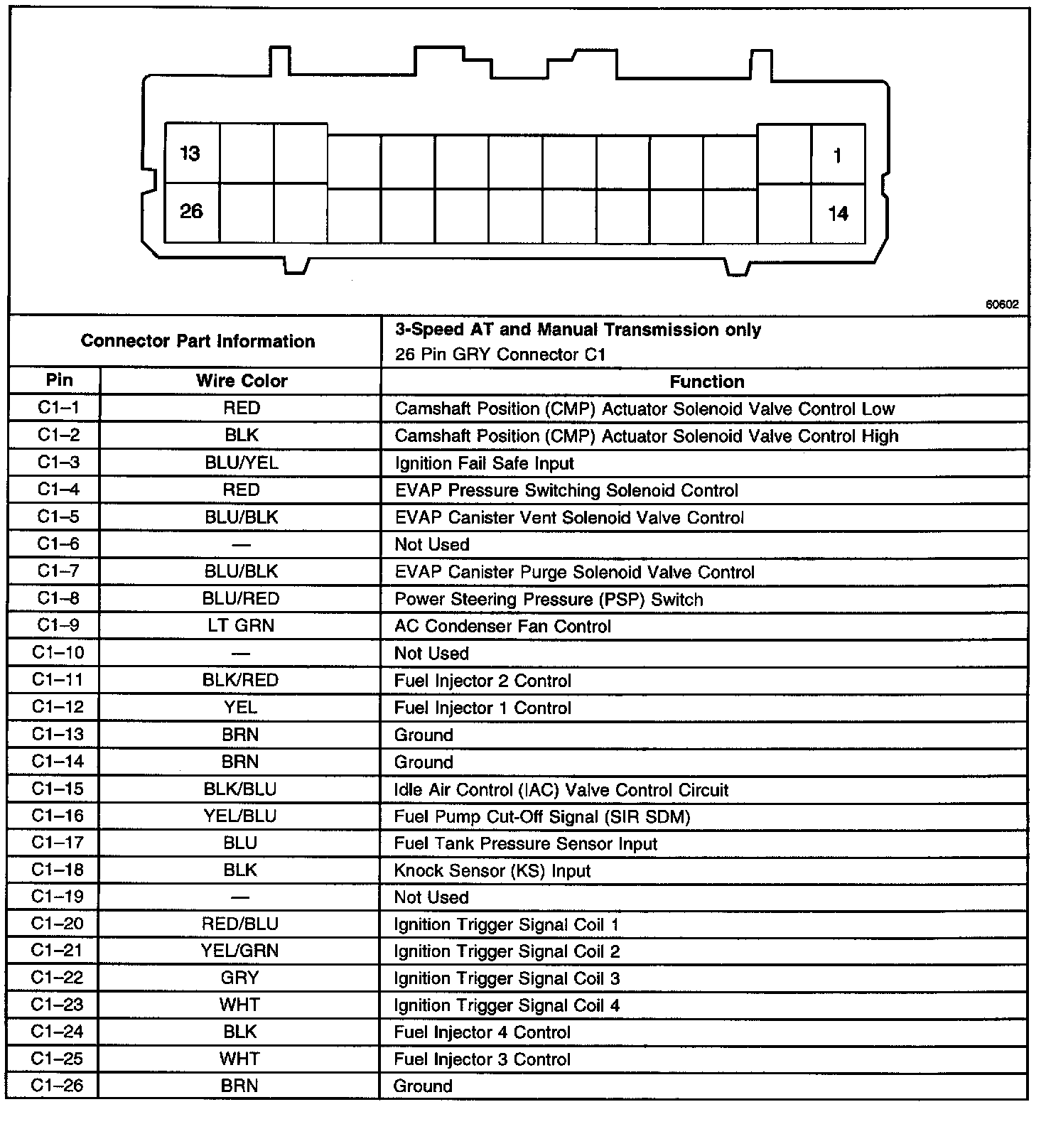 Back View Of The PCM Connector C1 (Manual And 3-Speed A/T Only):