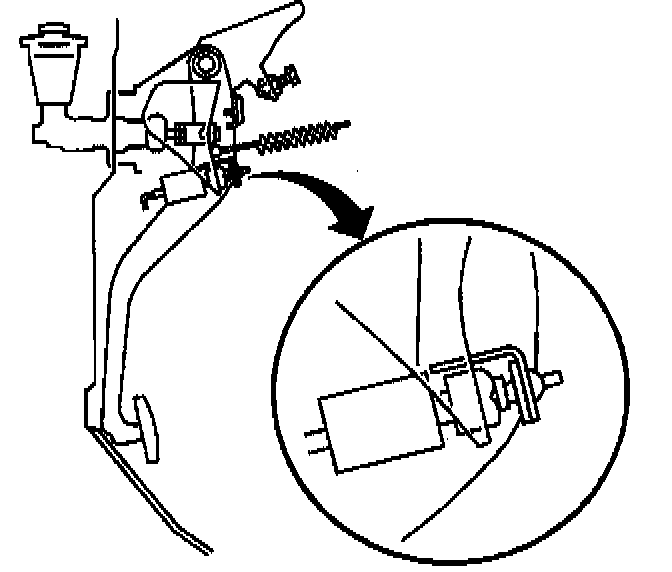 6. Adjust the CPP switch by threading the switch into the clutch and the brake pedal bracket until the continuity is achieved.