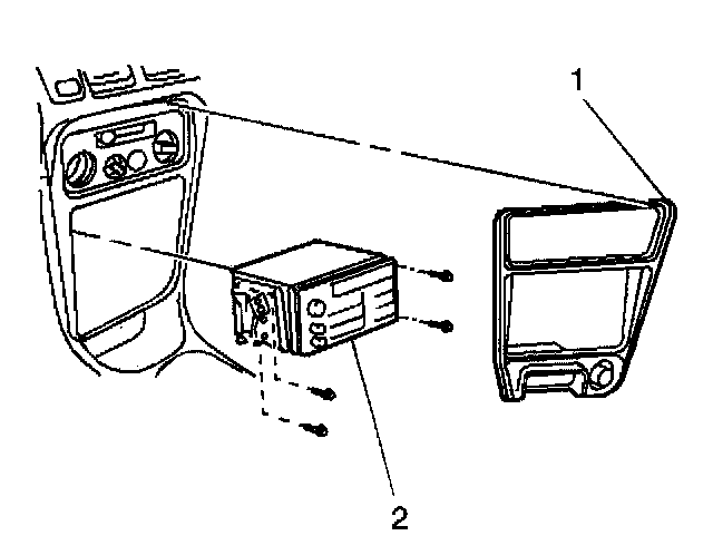9. Install the shifter trim plate (1) to the front floor console (2) (A/T only).