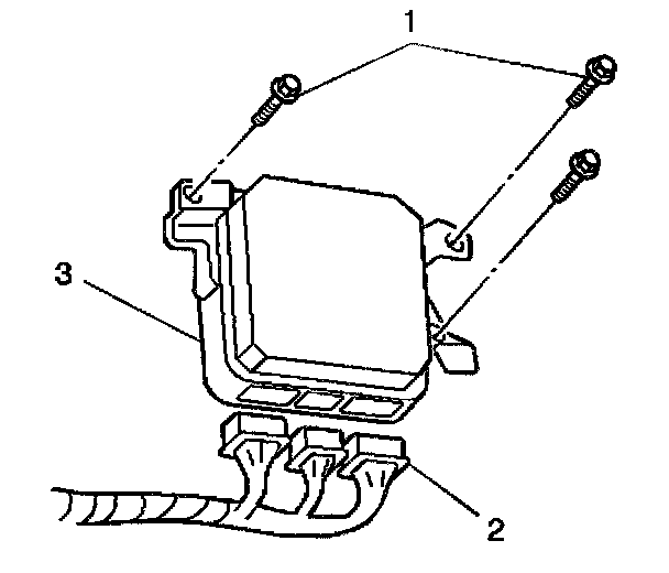15. Remove the 3 bolts (1) and the PCM (3), from the console carriage.