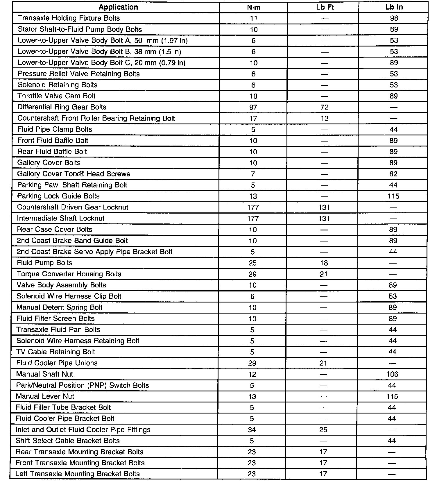 Fastener Tightening Specifications
