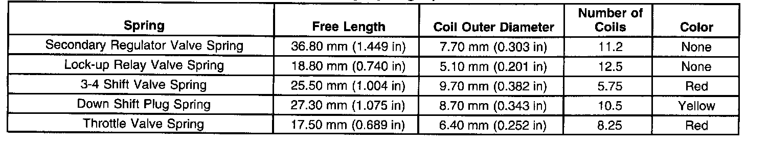 Upper Valve Body Spring Specifications