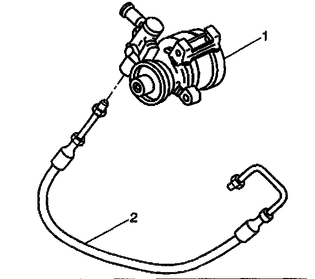2. Remove the power steering pressure hose (2) from the power steering pump (1).