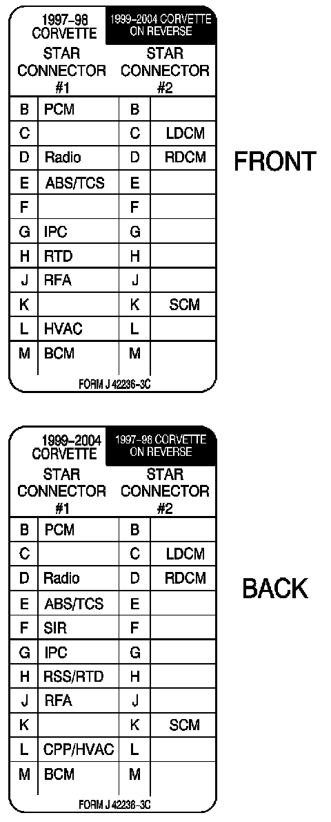All 1997-2004 Chevrolet Corvette models are equipped with two Class II data line splice packs (also called star connectors). Essential tool J 42236-A is designed to connect to these splice packs and is required for PCM reprogramming and data line diagnosis.