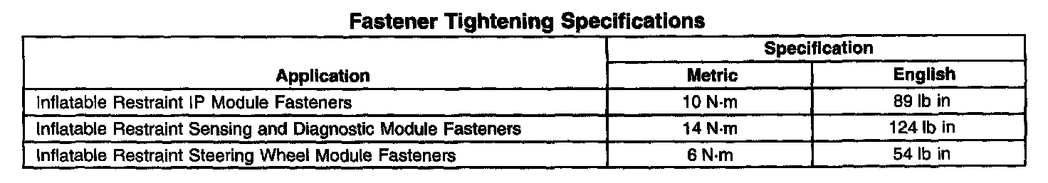 Fastener Tightening Specifications: