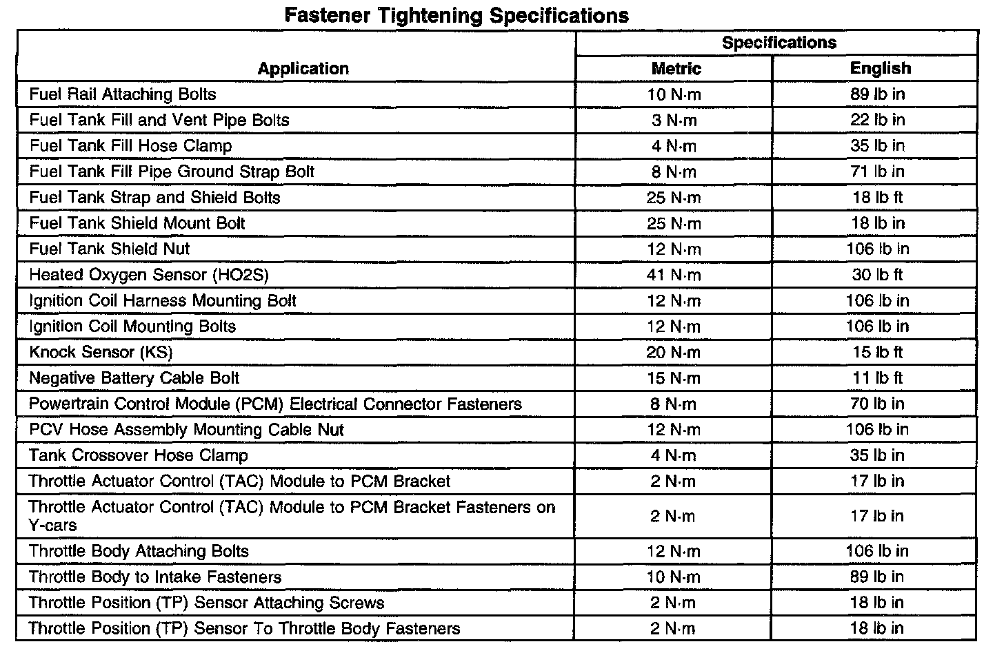 Fastener Tightening Specifications (Part 2 Of 2):