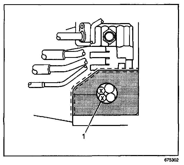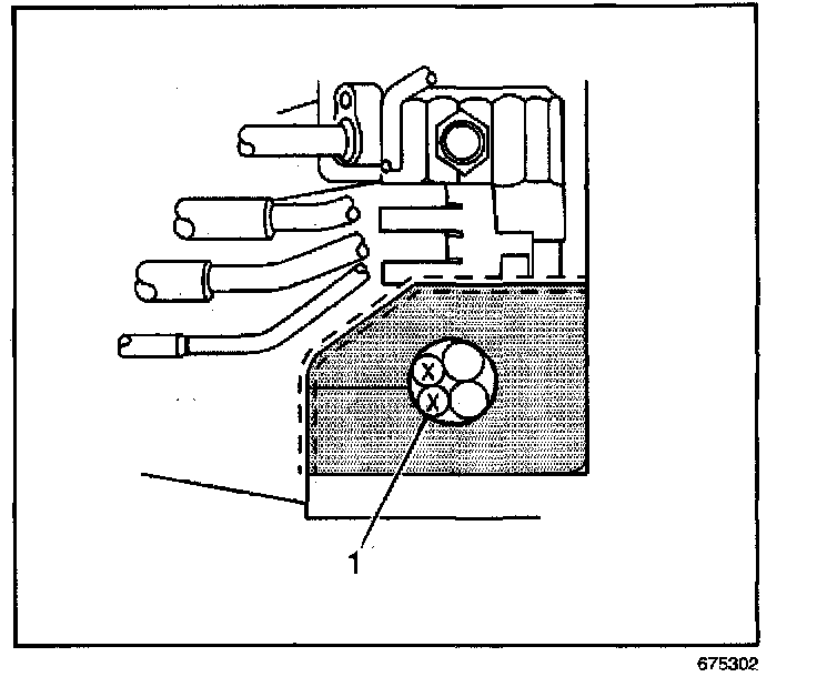 9. Remove the battery cables (1) from the engine wiring harness insulator.