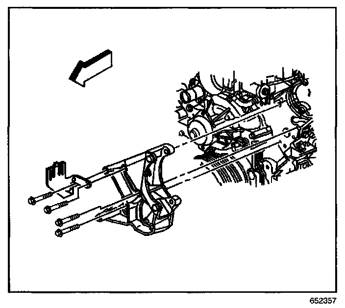 1. Install the generator bracket, power steering reservoir bracket and generator bracket bolts to the cylinder head.