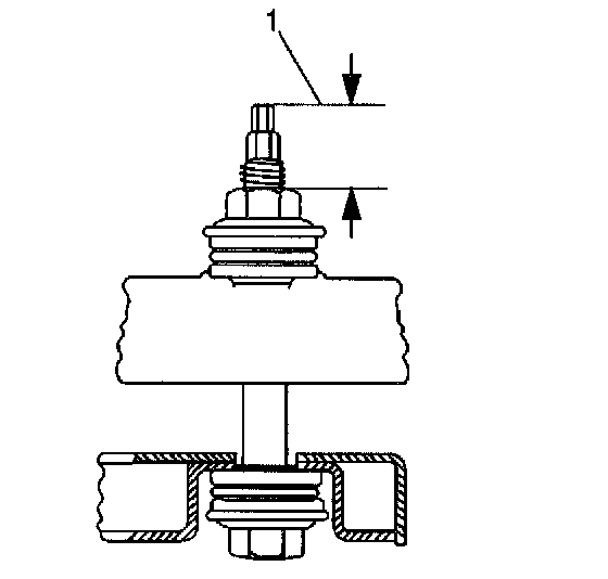 4. Measure the rear spring stud heights (1), the maximum difference should be 5 mm (0.196 inch).