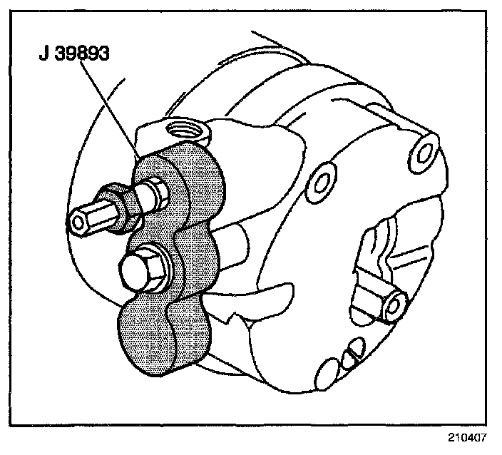 1. With the sealing washers in place, install the J 39893 on the rear head of the A/C compressor.
