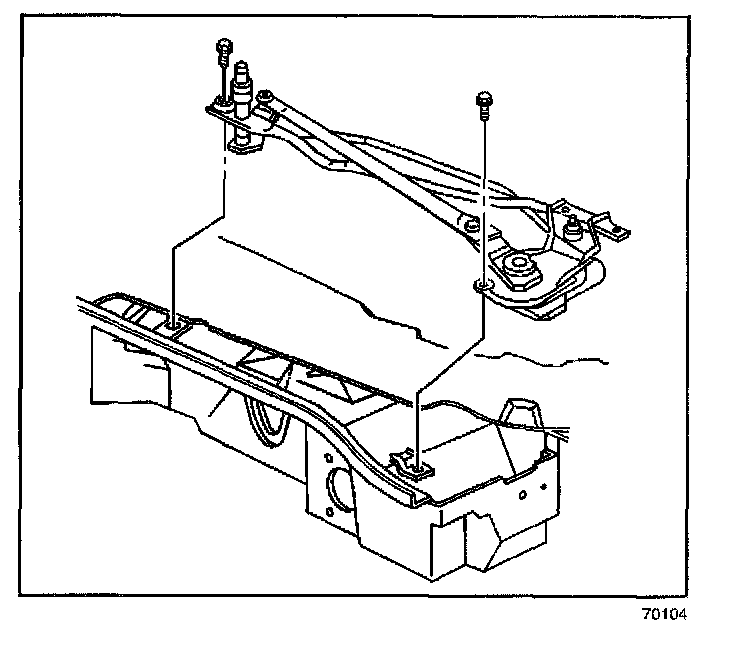 8. Remove the LH wiper transmission mounting bolts.