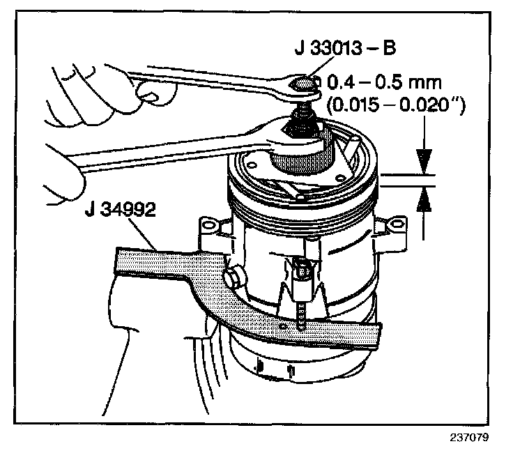 9. Back off the body of the J 33013-B in order to allow the center screw to be threaded onto the end of the compressor shaft.