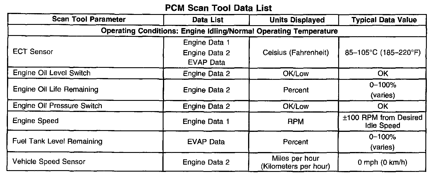 PCM Scan Tool Data List: