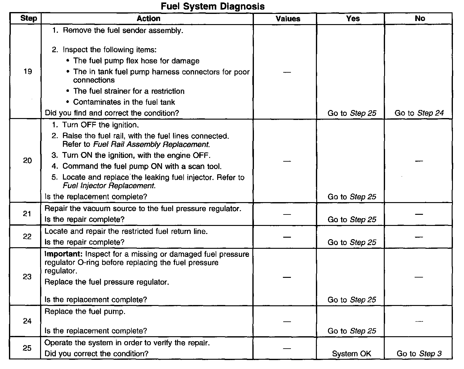 18. This step verifies that a circuit condition is not the cause of a fuel pressure concern. Inspect all fuel pump electrical circuits thoroughly.
