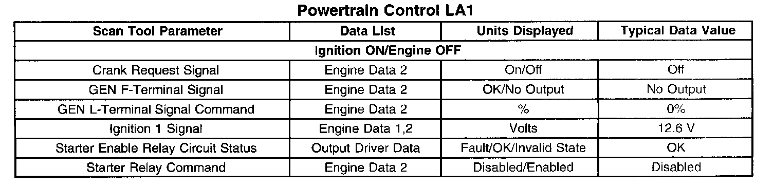Scan Tool Data List - Powertrain Control Module (PCM)