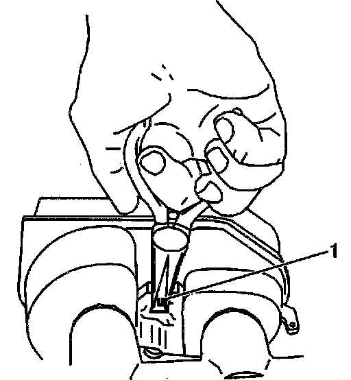 2. Remove the brake fluid level sensor. Using needle nose pliers, carefully depress the retaining tabs on the end of the brake fluid level sensor (1) and press the sensor through the reservoir to remove.