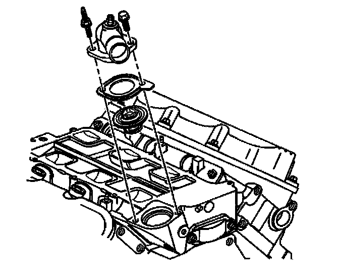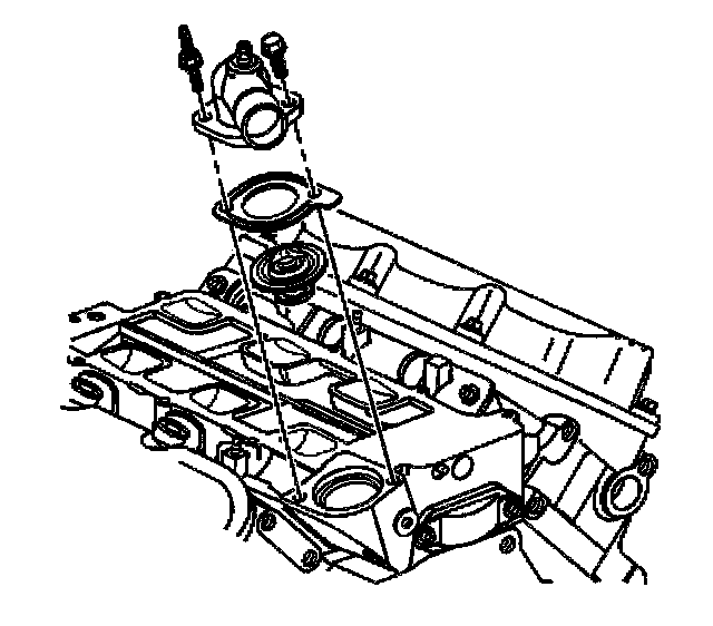 2. If removed, install the thermostat, the gasket, and the water outlet housing.