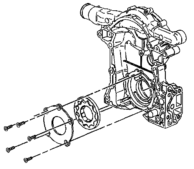 28. If replacing the engine front cover, remove the oil pump cover and gear set from the engine front cover.