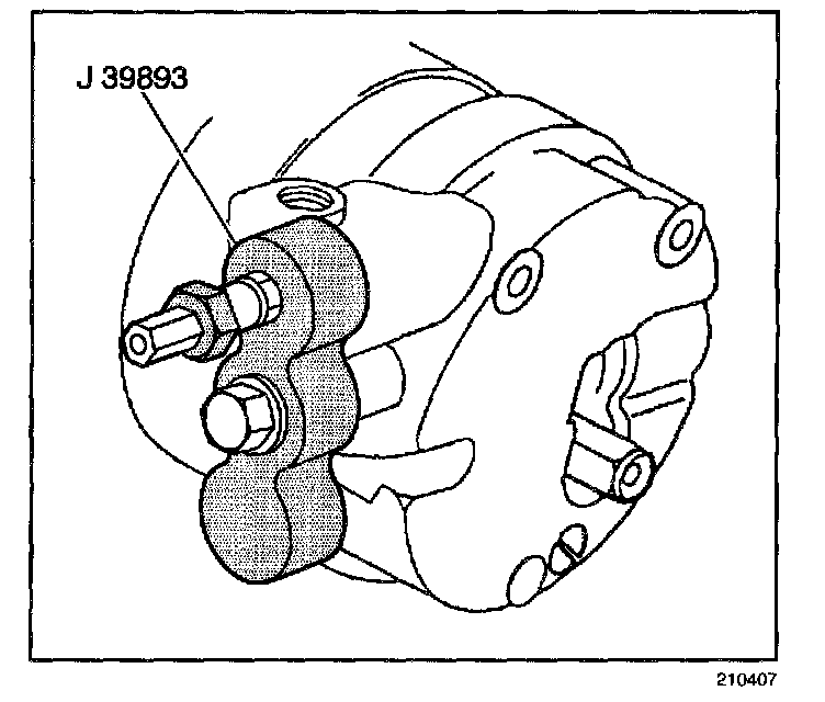 1. With the sealing washers in place, install the J 39893 on the rear head of the compressor.