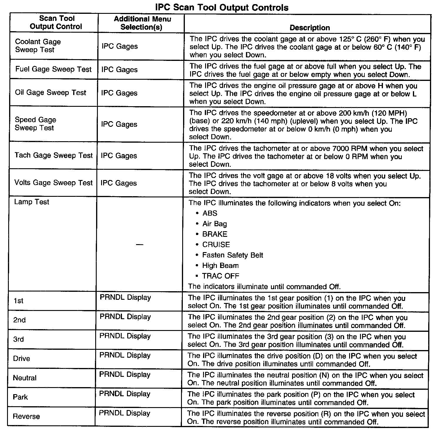 Scan Tool Output Controls - IPC