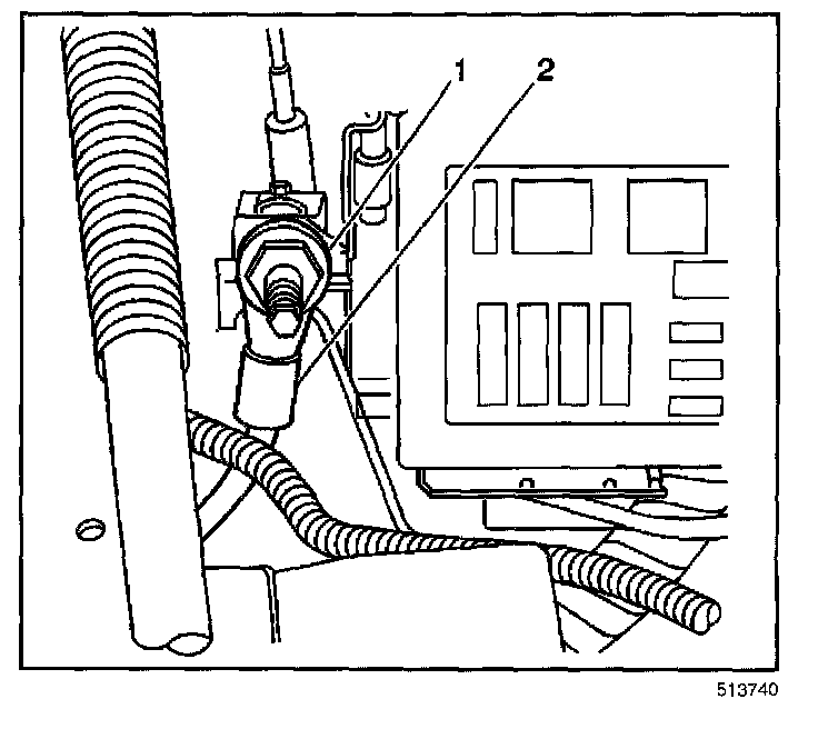 Tighten the positive battery cable junction block lead nut (1) to 15 N.m (11 lb ft).