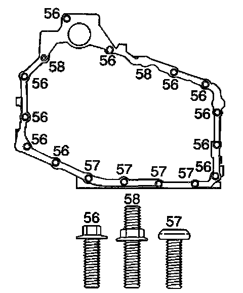 ^ Tighten the case side cover bolts (56-58) to 25 Nm (18 ft. lbs.).