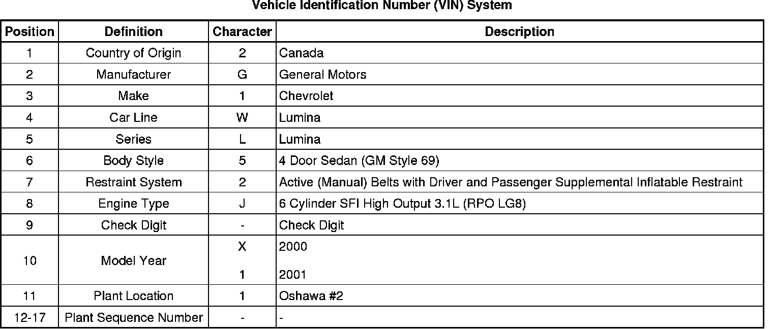 The Vehicle Identification Number (VIN) plate (1) is the legal identifier of the vehicle. The VIN plate is located on the upper left corner of the instrument panel and can be seen through the windshield from the outside of the vehicle.