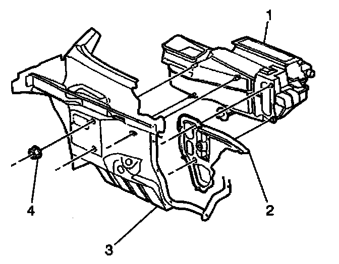 11. Remove the A/C module nuts (4) in the engine compartment.