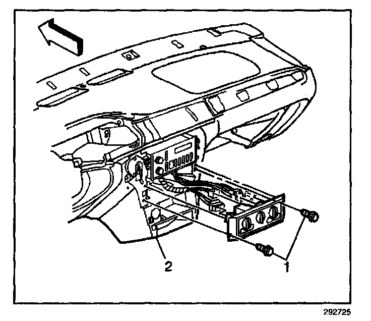 2. Remove the HVAC control assembly screws (1).