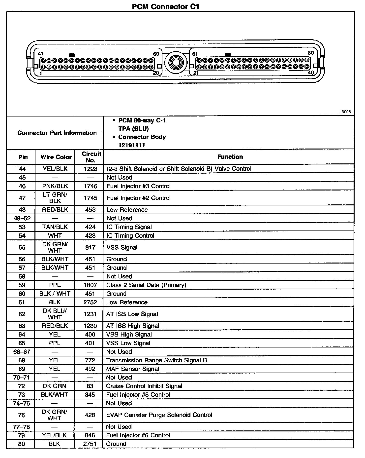 PCM Connector C1 (Part 2 Of 2):