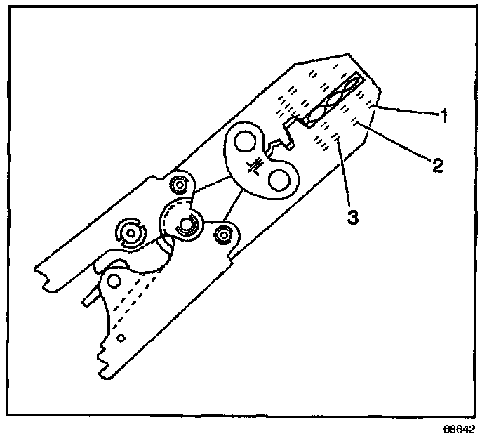 6. Place the splice sleeve in the nest. Ensure that the crimp falls midway between the end of the barrel and the stop. The sleeve has a stop (3) in the middle of the barrel (2) in order to prevent the wire (1) from going further. Close the hand crimper handles slightly in order to firmly hold the splice sleeve in the proper nest.
