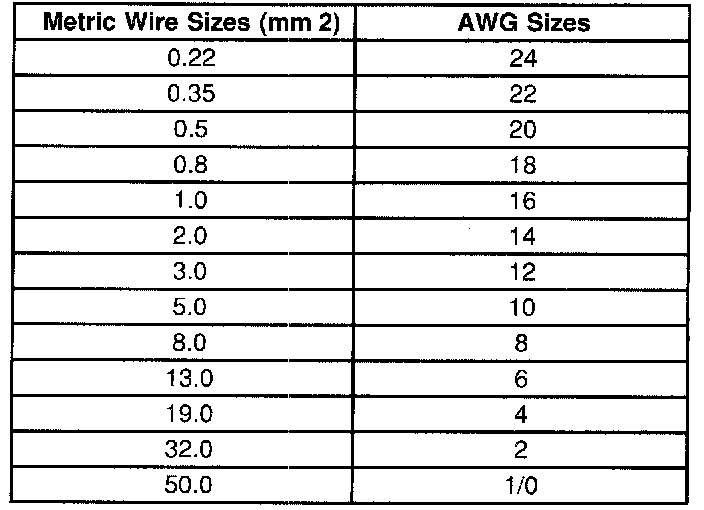 Wire Size Conversion Table: