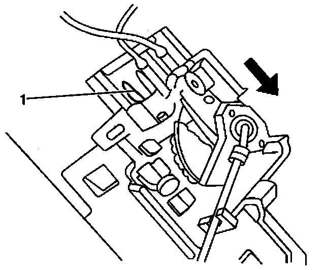 3. Depress the retaining tab (1), and slide the fuel level sensor assembly down in order to remove the sensor from the fuel sender assembly.