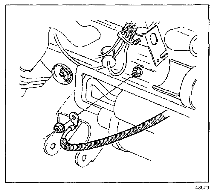3. Install the negative cable nut to the engine block stud.