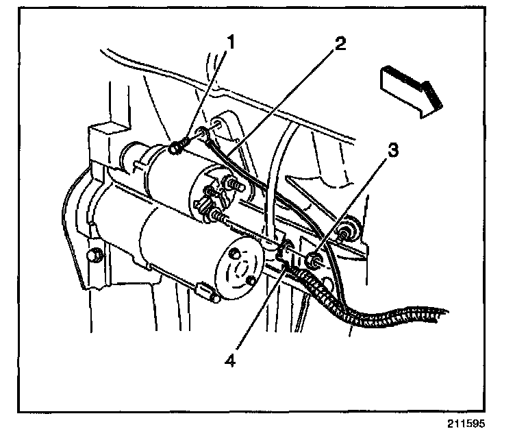 ^ Remove the positive cable nut (3) (at starter solenoid).