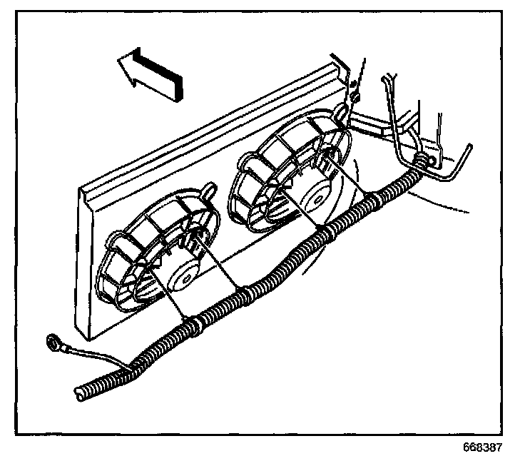 6. Install the positive cable clips at the cooling fans.
