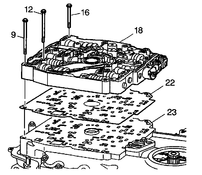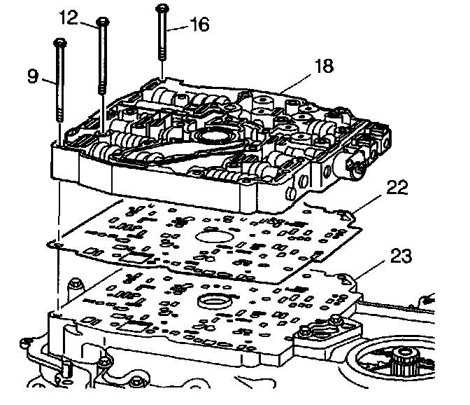 4. Remove and discard the valve body to spacer plate gasket (22).