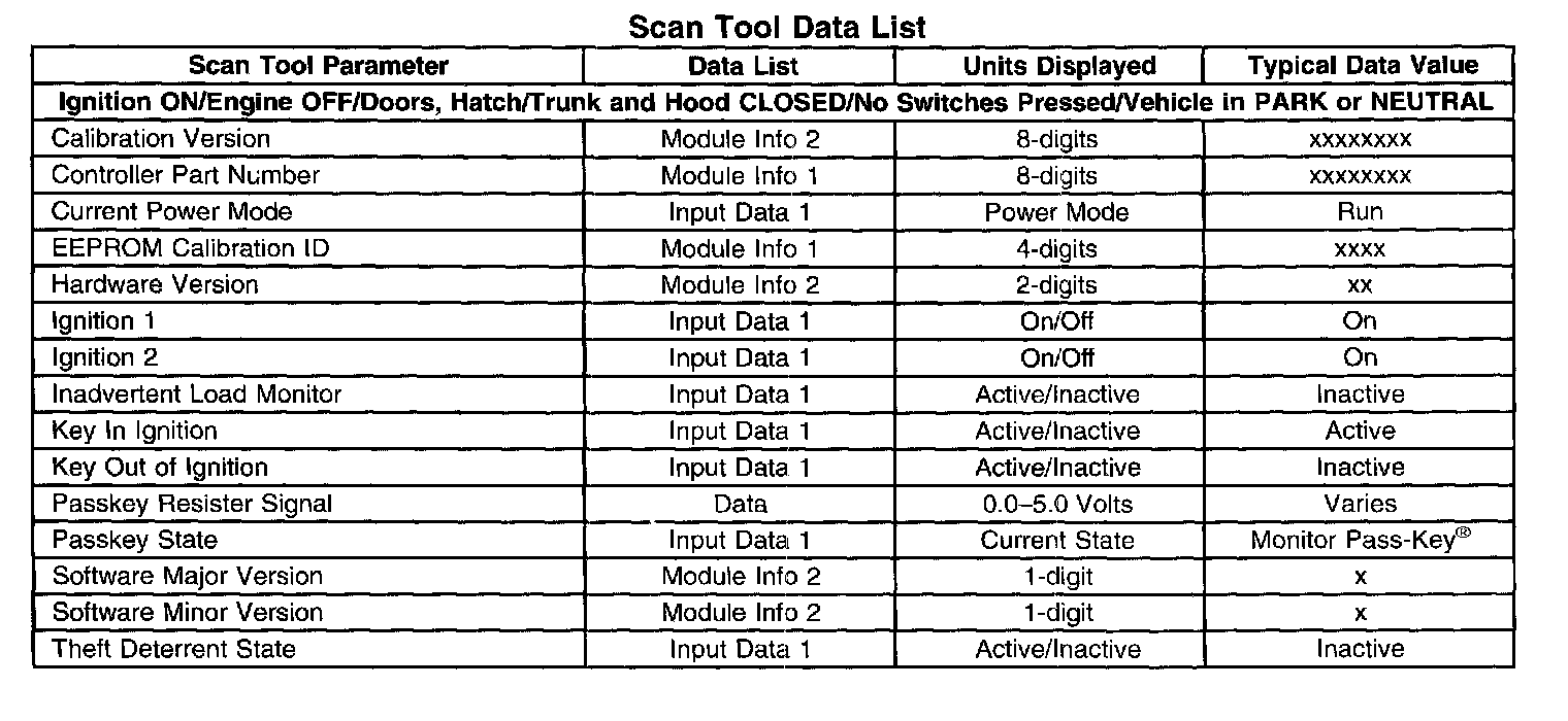 Scan Tool Data List: