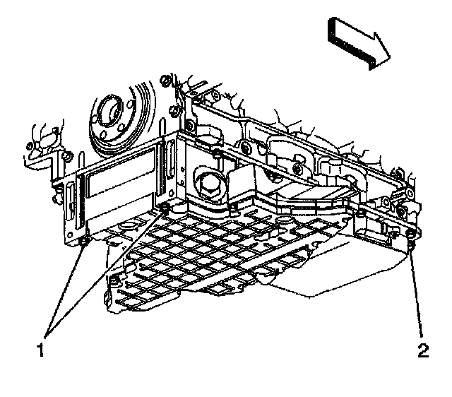 4. Install the oil pan-to-front cover bolts (2) until snug. Do not overtighten.