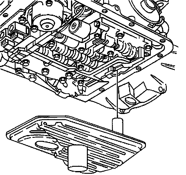 Important: Remove ALL traces of old gasket material from the transmission case and the oil pan gasket surfaces.