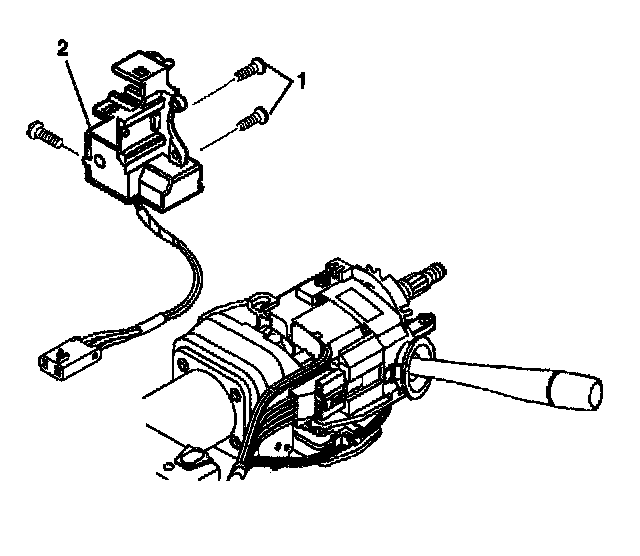 6. Install the wire harness strap (2) to the steering column tilt head assembly (1).