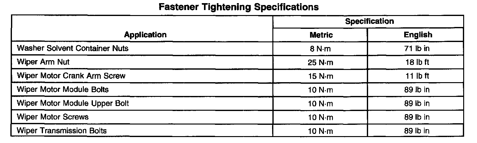 Wiper and Washer Systems: Specifications
