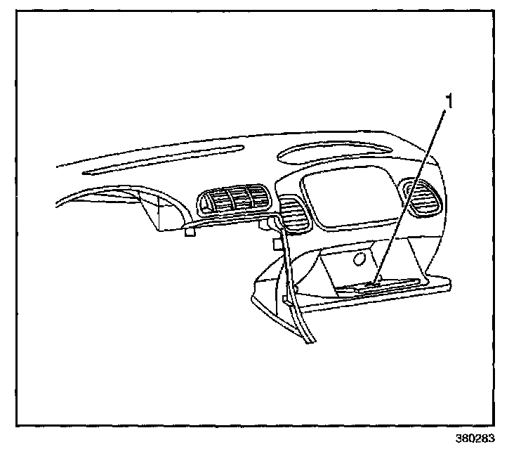 The service parts ID label (1) is located on the inside of the I/P passenger compartment door.