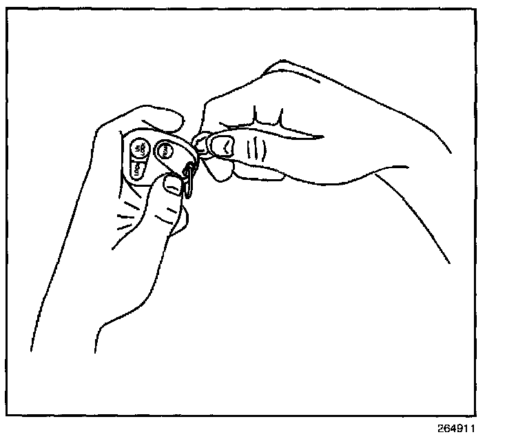1. Insert a small coin between the 2 halves of the transmitter case in the slot located near the key ring.