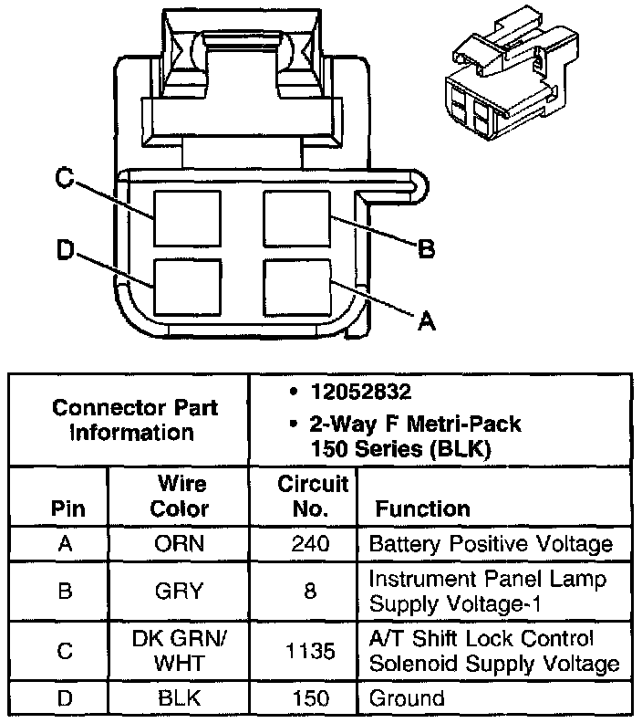 Automatic Transmission Shift Lock Control Connector End Views
