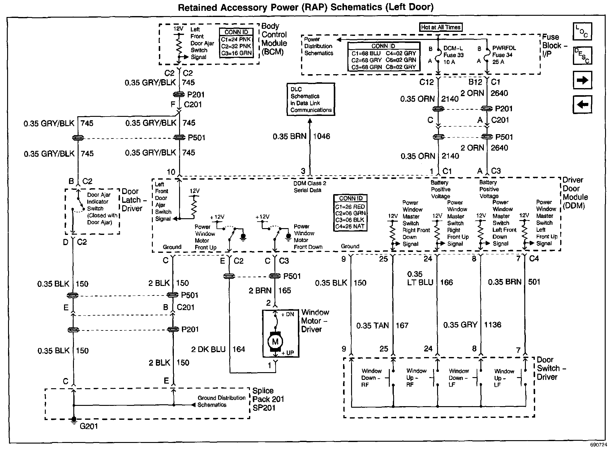 Retained Accessory Power (RAP) Schematics: Left Door: