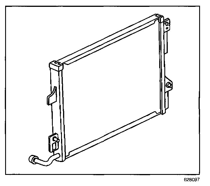 2. Position the condenser into the vehicle. Install the condenser to the radiator so that the condenser is above the installed position.